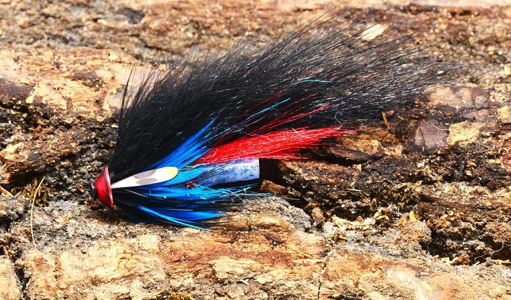 Alle fluer er bundet med tapert American Opossum som vinge og med falsk jungle cock