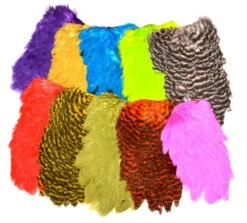 These saddles are just perfect for all kinds of flies, there are small feathers and bigger feathers, so you are able to tie many different kind and size of flies in one saddle. And here we are talking about a very high quality of Hen feathers.