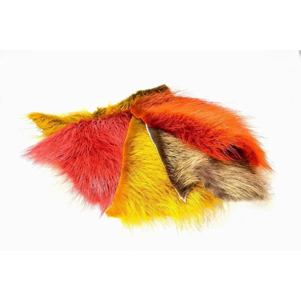 FF Nutria is a high quality product. Very popular for lightdressed salmon flies. Also perfect for a lot of Coastal flies. The spikehair is tapered and hollow. They are dyed on light natural pelts, witch gives it a nice and cool look between the color and the dark spots on the spikehair Comes in a big piece
