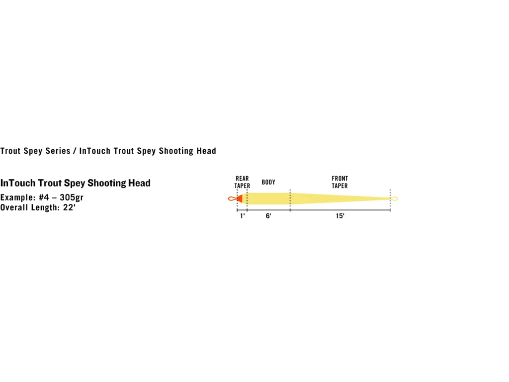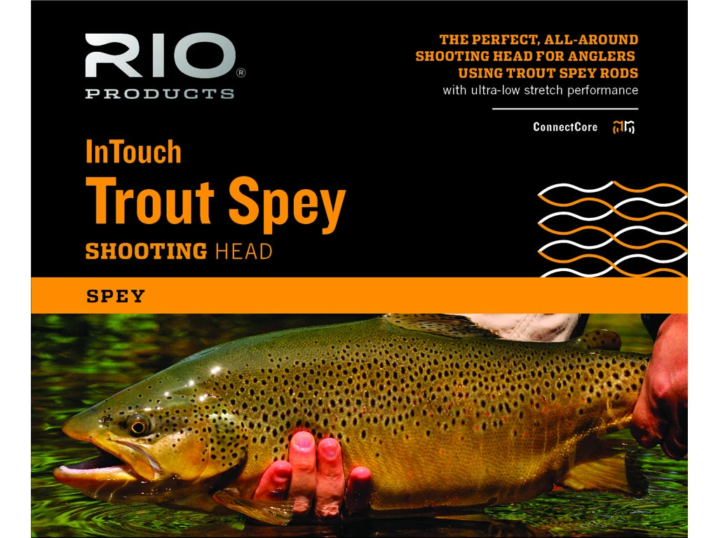 The INTOUCH TROUT SPEY SHOOTING HEAD has a very easy casting, short head for anglers using light two-handed trout Spey rods, and regular single-handed fly rods (just check the grain weight to match). Each head is built on RIO’s ultra-low stretch ConnectCore for maximum sensitivity. Anglers can attach regular leaders, 10ft replacement tips or trout versileaders to the front, and these heads are perfect for nymph and indicator rigs, soft hackles and small streamers.