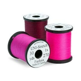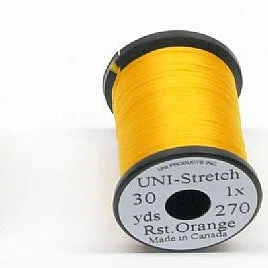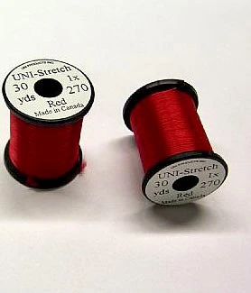 Tired of having strands of floss separate and slide down the hook bend? An exclusive offering of UNI-Products, UNI-Stretch, will solve your problems. This stretch nylon material is easy to wrap, stays in place, and makes excellent underbodies as well. The White takes coloured markers very well so you can customize your patterns.